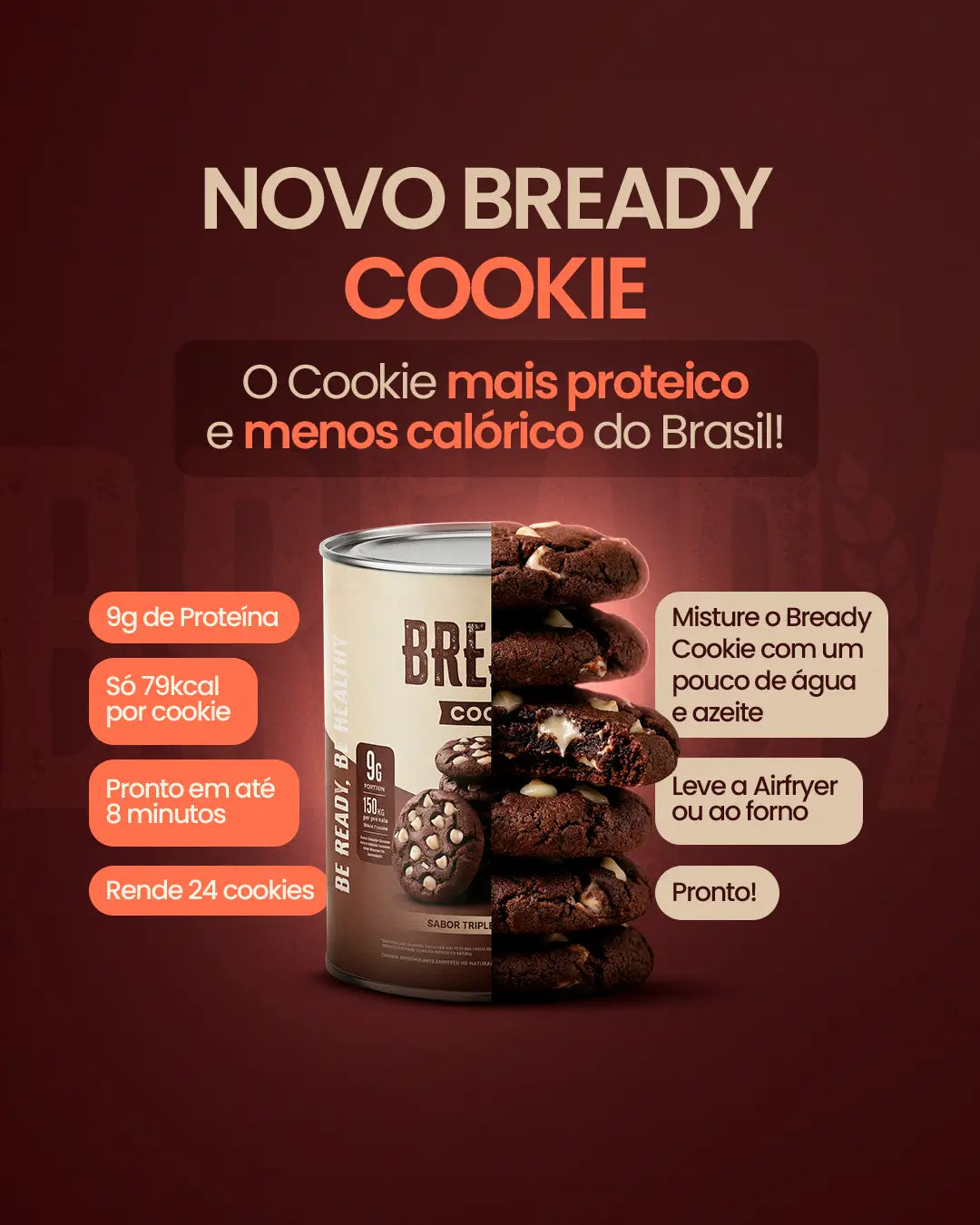 E o Bready funciona pra você que simplesmente quer comer algo mais nutritivo, saudável e versátil na rotina. Seja para fazer uma pizza saudável na janta, ou até mesmo comer um brownie low carb no café da manhã.